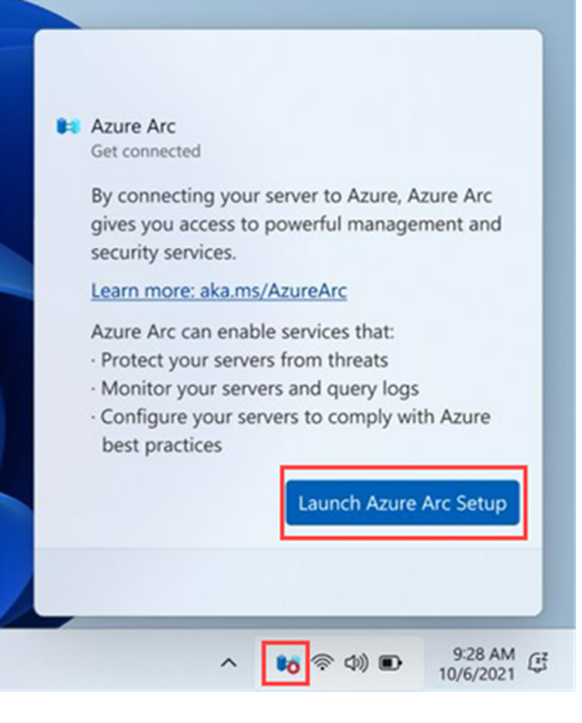 Figura 1 – Ponto de entrada do Azure Arc Setup no Windows Server 2025.