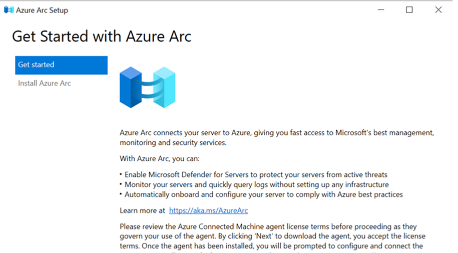 Figura 2 – Tela inicial do assistente Azure Arc Setup.
