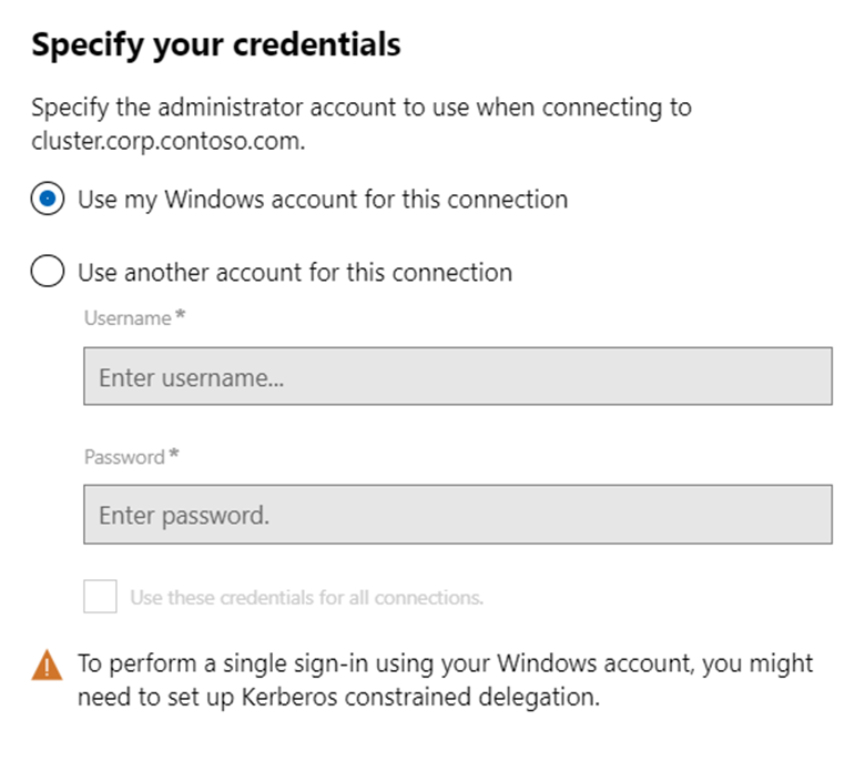 Depois que o recurso é adicionado, vem a parte que costuma causar mais confusão: a credencial usada para abrir o gateway não é, obrigatoriamente, a mesma credencial usada para administrar o servidor remoto. Uma coisa é o usuário que entra no portal do Windows Admin Center. Outra é a identidade que será apresentada ao host de destino durante a sessão de gerenciamento.